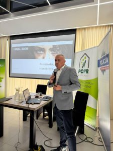 Uczestnicy mieli okazję wysłuchać również prelekcji poświęconej tematyce handlu ludźmi, prowadzonej przez Pawła Zarębskiego – Przewodniczącego Zespołu ds. Przeciwdziałania Handlu Ludźmi, Dyrektora Wydziału Zarządzania Delegaturą Urzędu we Włocławku, podczas której omówiono procedury reagowania oraz mechanizmy współpracy pomiędzy instytucjami.