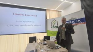 Następnie omówiono działania nowo powstałego Ośrodka Kuratorskiego nr 1 przy Sądzie Rejonowym w Tucholi, które przedstawił Tomasz Malcan kurator specjalista z Zespołu Kuratorskiej Służby Sądowej Sądu Rejonowego w Tucholi, a obecnie również kierownik tegoż Ośrodka.