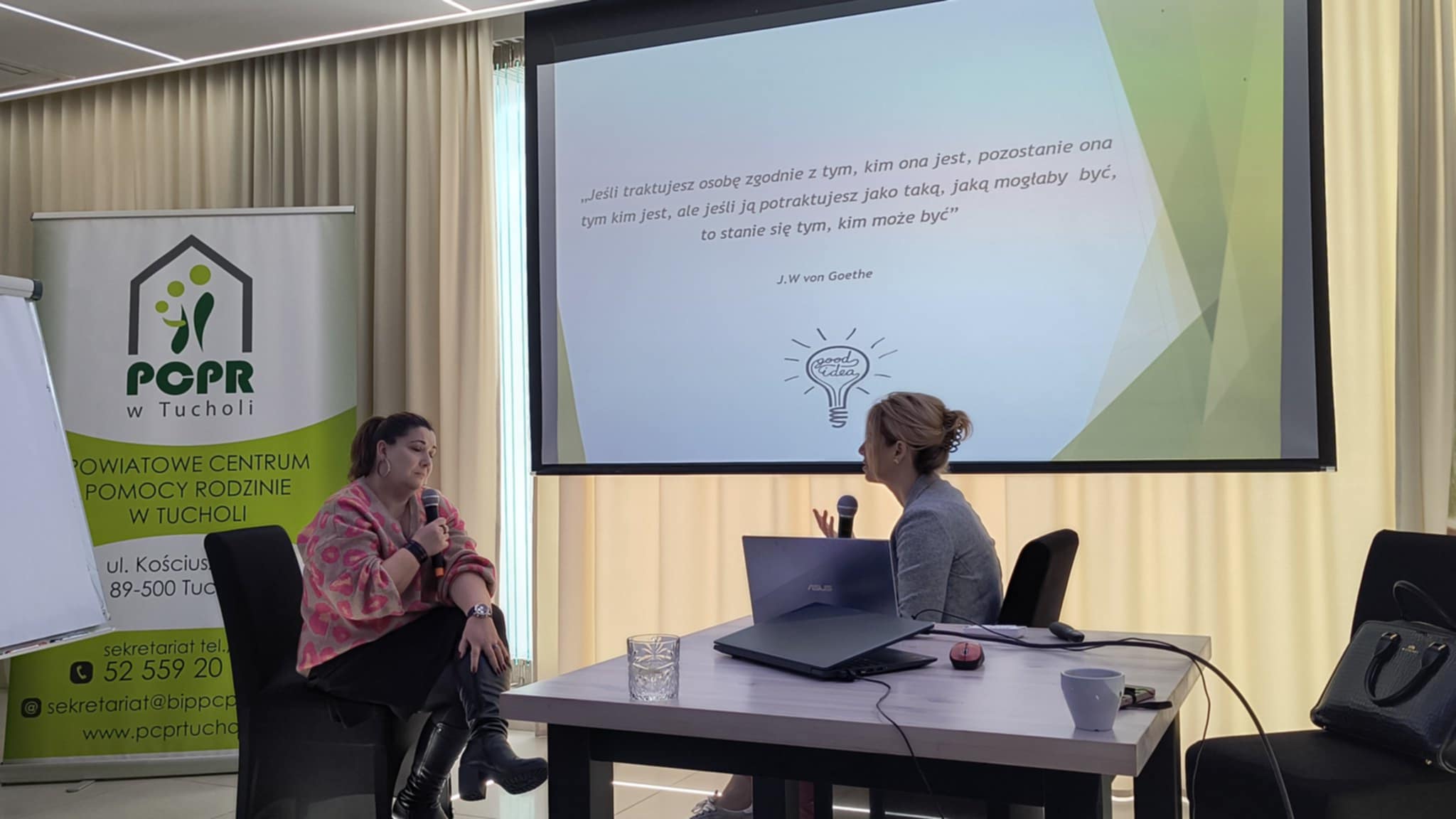 W dniach 16-17.10.2025 r. w Fojutowie odbyła się XI Powiatowa Interdyscyplinarna Konferencja „Widzimy, reagujemy, przeciwdziałamy”, organizowana przez Powiat Tucholski i Powiatowe Centrum Pomocy Rodzinie w Tucholi. Współorganizatorami była Komenda Powiatowa Policji w Tucholi. W konferencji wzięło udział ponad 130 osób z jednostek powiatowych i samorządowych zajmujących się szeroko pojmowaną pomocą społeczną.