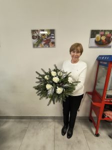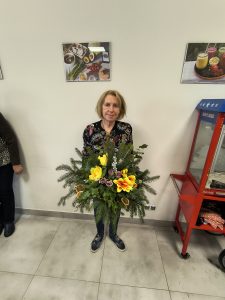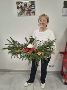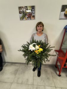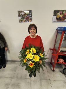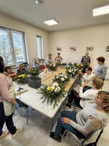 Kolejne wydarzenie w Klubie odbyło się 28 października 2025 r. Tego dnia seniorzy uczestniczyli w warsztatach florystycznych prowadzonych przez Marzenę Kowalik. Zajęcia trwały od godziny 9:00 do 13:00 i dostarczyły uczestnikom wielu pozytywnych emocji. Seniorzy z dużym zaangażowaniem tworzyli własne kompozycje kwiatowe, ucząc się zasad łączenia kolorów, układania roślin oraz dekorowania gotowych prac. Warsztaty były nie tylko okazją do rozwijania zdolności manualnych i artystycznych, ale również wspaniałą formą relaksu i wspólnej zabawy. Na zakończenie każdy uczestnik mógł zabrać do domu własnoręcznie wykonaną kompozycję, co wywołało wiele radości i satysfakcji.