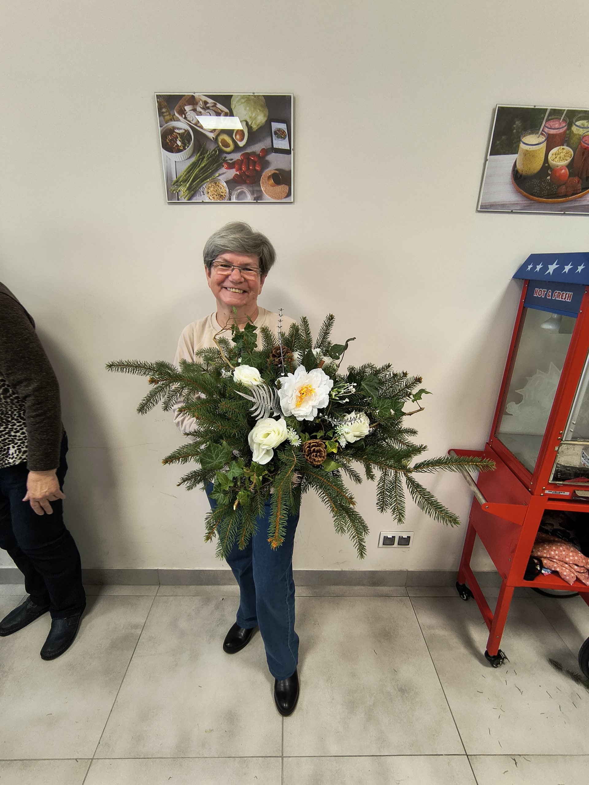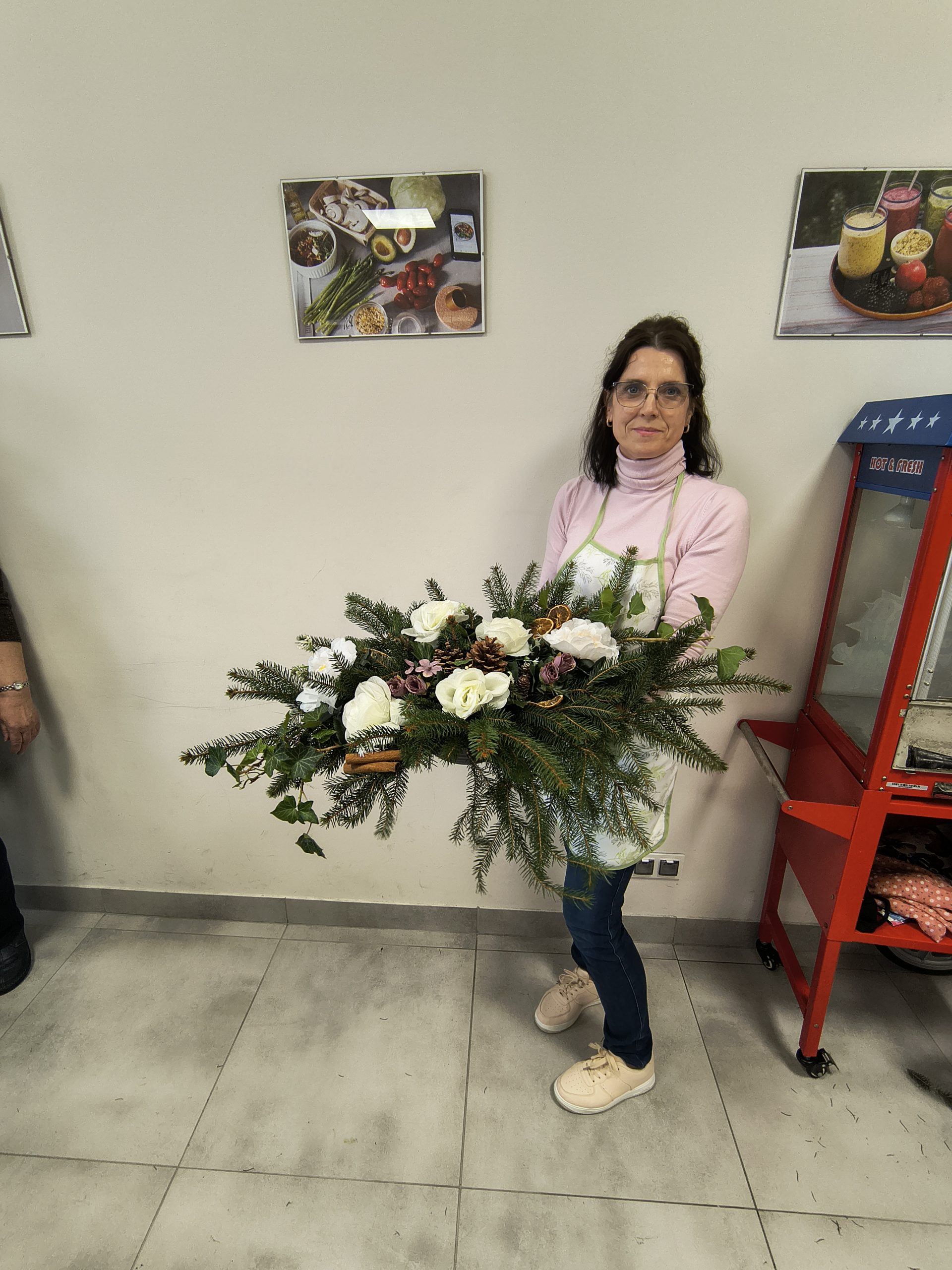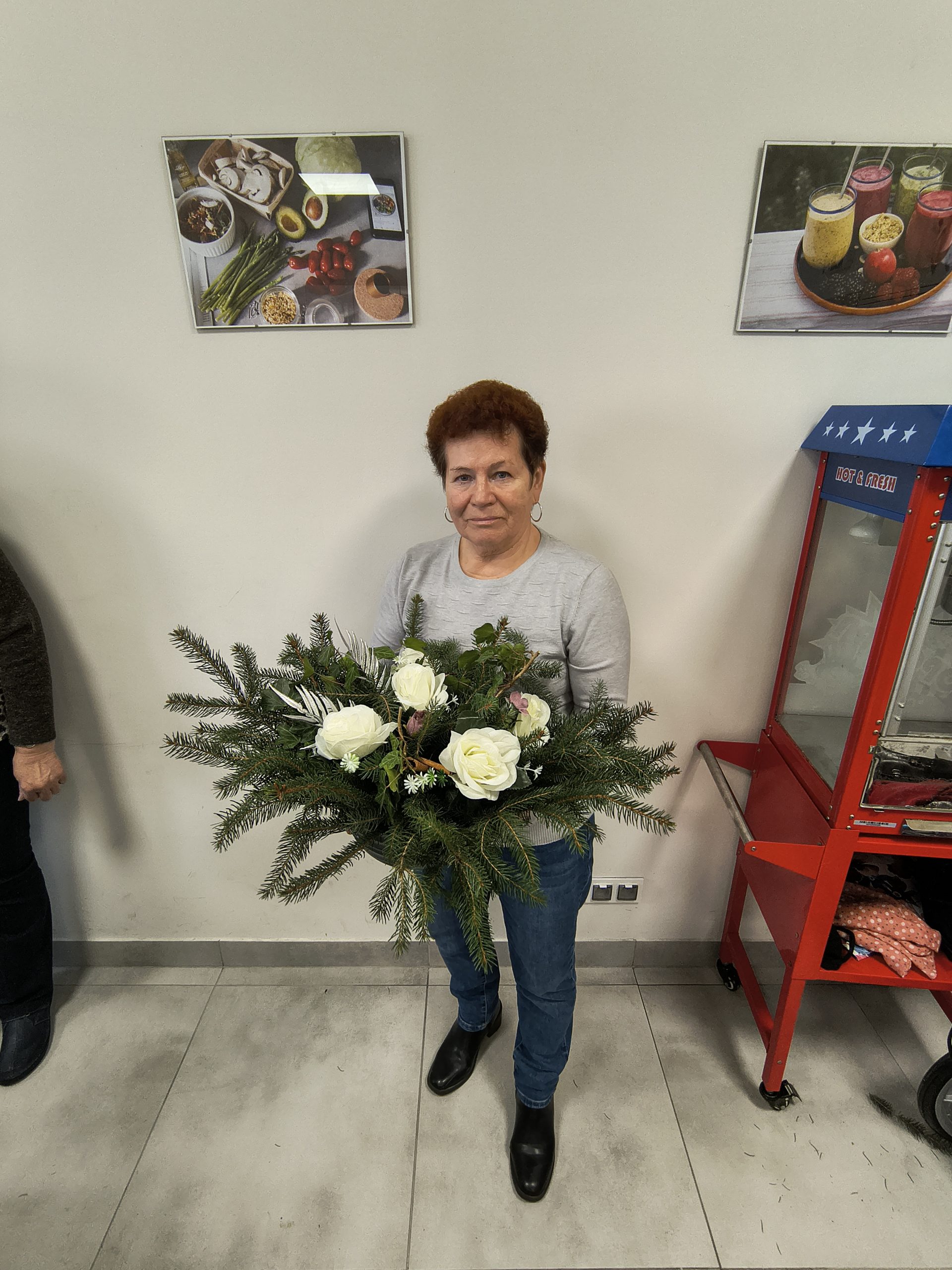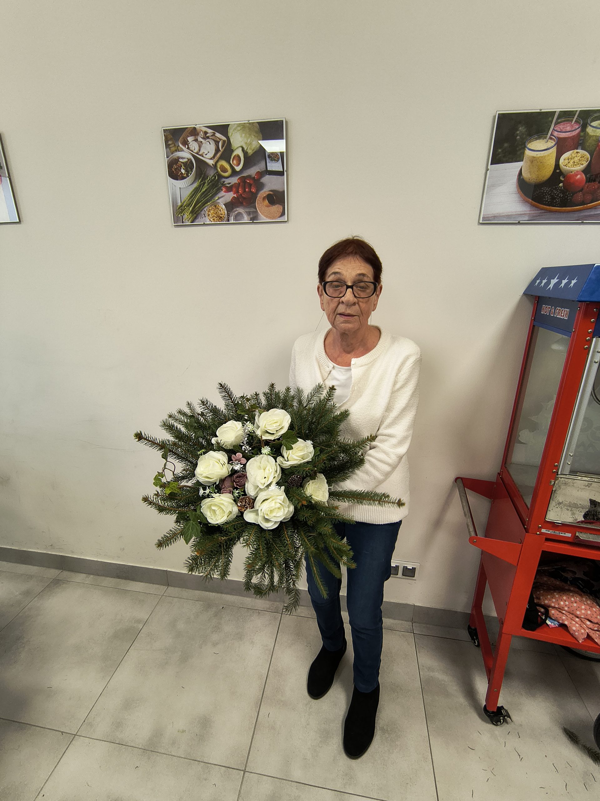 Kolejne wydarzenie w Klubie odbyło się 28 października 2025 r. Tego dnia seniorzy uczestniczyli w warsztatach florystycznych prowadzonych przez Marzenę Kowalik. Zajęcia trwały od godziny 9:00 do 13:00 i dostarczyły uczestnikom wielu pozytywnych emocji. Seniorzy z dużym zaangażowaniem tworzyli własne kompozycje kwiatowe, ucząc się zasad łączenia kolorów, układania roślin oraz dekorowania gotowych prac. Warsztaty były nie tylko okazją do rozwijania zdolności manualnych i artystycznych, ale również wspaniałą formą relaksu i wspólnej zabawy. Na zakończenie każdy uczestnik mógł zabrać do domu własnoręcznie wykonaną kompozycję, co wywołało wiele radości i satysfakcji.
