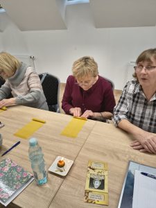 Kolejnym punktem programu był wykład „Jak zdrowo żyć” uzupełniony warsztatami kulinarnymi. Seniorzy zdobyli wiedzę o zasadach zdrowego odżywiania, korzystaniu z naturalnych składników oraz przygotowywaniu prostych, wartościowych potraw. Warsztaty pozwoliły uczestnikom nie tylko na zdobycie nowych umiejętności kulinarnych, ale również na integrację i wymianę doświadczeń dotyczących zdrowego stylu życia.