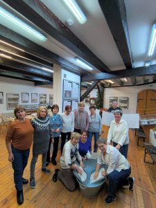 Pierwszą częścią wizyty było zwiedzanie muzeum z przewodnikiem, który zaprezentował zarówno wystawy stałe, jak i czasowe, przybliżając historię regionu, kulturę Borowiaków oraz dzieje miasta i okolic. Uczestnicy mieli możliwość poznania licznych eksponatów związanych z tradycją, rzemiosłem i życiem codziennym mieszkańców Borów Tucholskich, a także wysłuchali opowieści o historii Tucholi i jej znaczeniu w regionie.