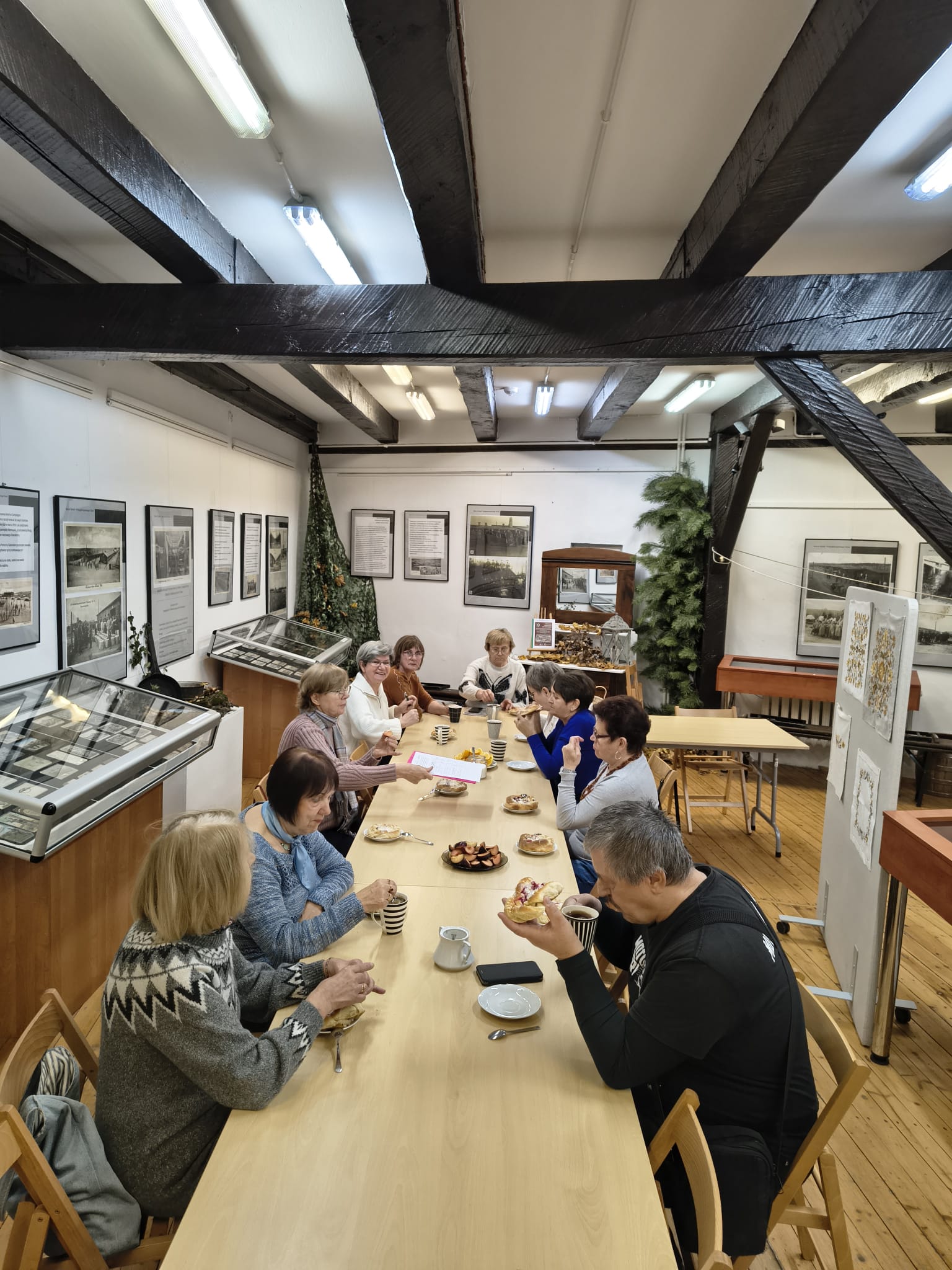 Pierwszą częścią wizyty było zwiedzanie muzeum z przewodnikiem, który zaprezentował zarówno wystawy stałe, jak i czasowe, przybliżając historię regionu, kulturę Borowiaków oraz dzieje miasta i okolic. Uczestnicy mieli możliwość poznania licznych eksponatów związanych z tradycją, rzemiosłem i życiem codziennym mieszkańców Borów Tucholskich, a także wysłuchali opowieści o historii Tucholi i jej znaczeniu w regionie.